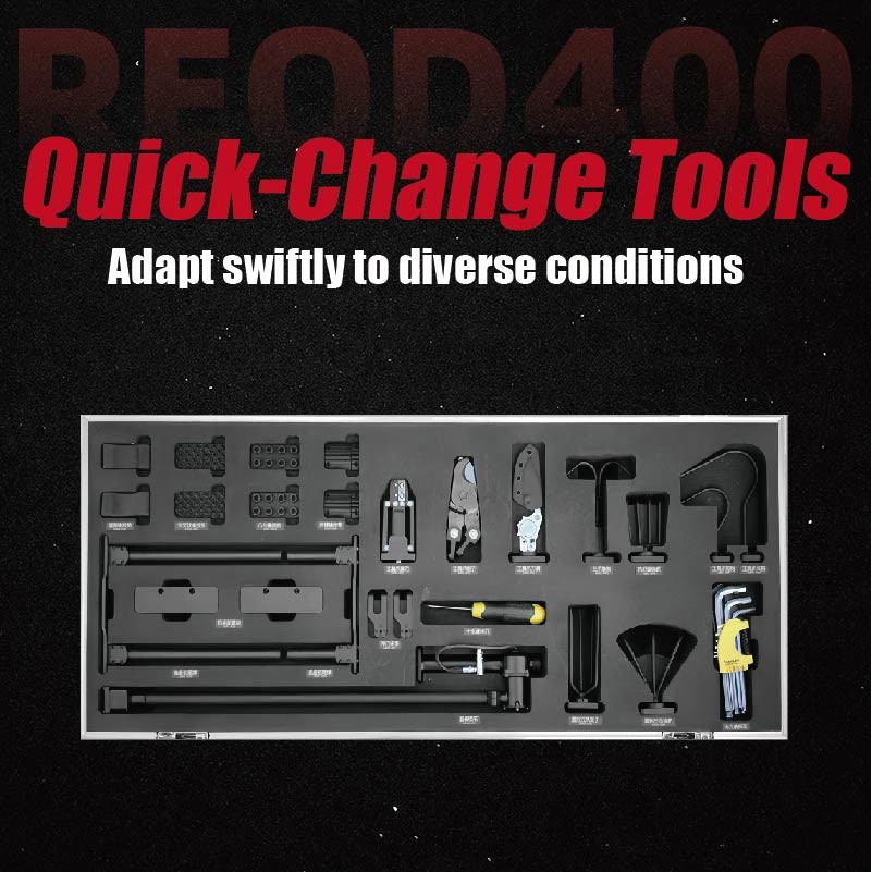 REOD400 robotu 18 çeşit "hızlı değişim aletleri" ile donatılmıştır. Bunlardan 6'sı tutma aletleri, 6'sı temel aletler ve 6'sı genişletilmiş aletler.Farklı operasyonel görevlere ve çeşitli tehlikeli nesnelerin türlerine ve biçimlerine göre "tutma araç setlerinin" hızlı bir şekilde değiştirilmesini sağlayan, böylece kullanıcıların çeşitli operasyonel ihtiyaçlarını karşılıyor.