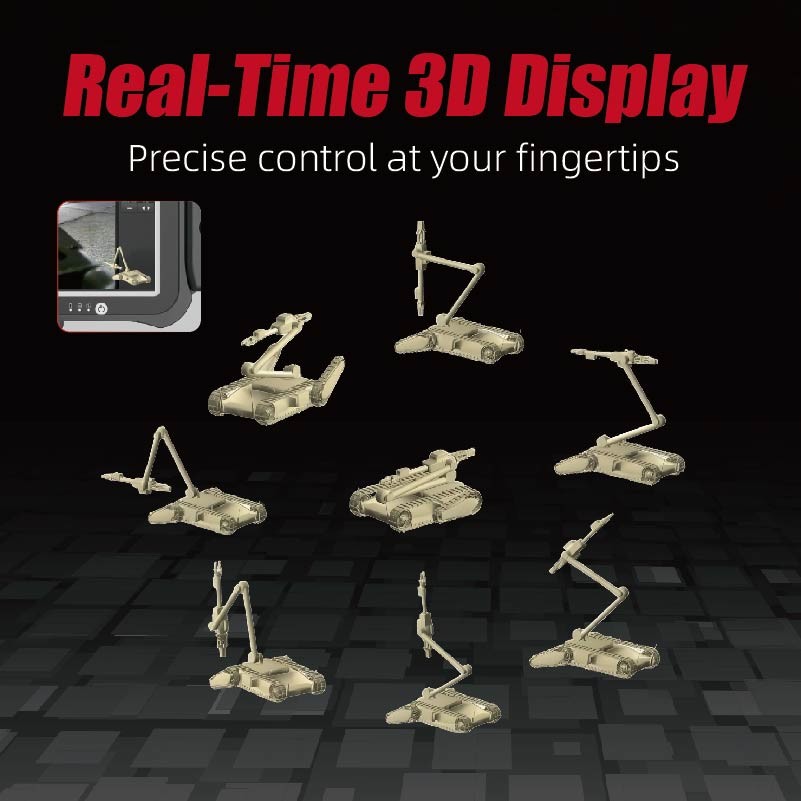 Bomba imha robotları genellikle görevler sırasında görüş hattının ötesinde çalıştığından, robotun eklemlerinin açıları ve uzaysal konumları hakkında gerçek zamanlı bilgi, operatörler için çok önemlidir. REOD400, yalnızca robotun durum bilgilerinin gerçek zamanlı geri bildirimini sağlamakla kalmayıp, aynı zamanda robotun 3D durumunun uzaktan gerçek zamanlı görüntülenmesi için önde gelen 3D sanal görüntüleme teknolojisini kullanmak için yüksek hızlı bağlantılar ve gelişmiş bilgisayar teknolojisi kullanır. Bu, robotun "uzakta" olsa bile "el altında" hissetmesini sağlayarak daha sezgisel bir çalışma sağlar.