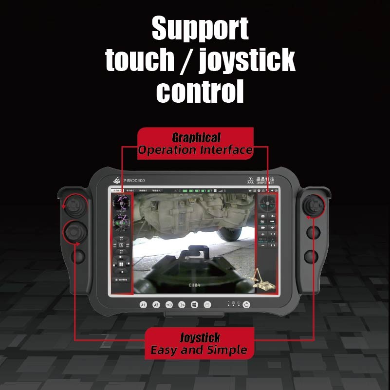 Grafiksel dokunmatik / joystick kontrol operasyon tasarımı, şu anda uluslararası alanda önde gelen bir bomba imha robotu kontrol çözümüdür. Daha kullanıcı dostu etkileşimi ve güvenilir çalışması nedeniyle kullanıcılar tarafından büyük beğeni toplamıştır. Ana özellikleri şunlardır:
