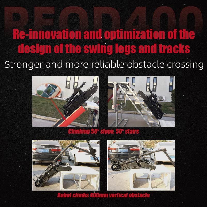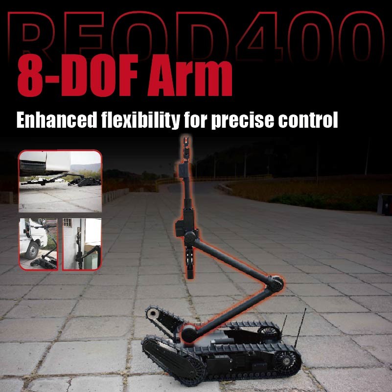REOD400 robot kolu, güçlü uzaysal erişim yetenekleri sağlayan 8 serbestlik dereceli entegre bir tasarıma sahiptir. Bu tasarım, robot kolunun yalnızca geleneksel bomba imha görevlerini değil, aynı zamanda geleneksel 5 veya 6 serbestlik dereceli bomba imha robotlarının yapamayacağı, yüksek, alçak, derin çukur veya masaüstü ortamlarda nesneleri kavrama ve yüksek, alçak ve derin çukur ortamlarda çok açılı keşif yapma gibi işlemleri de gerçekleştirmesini sağlar.